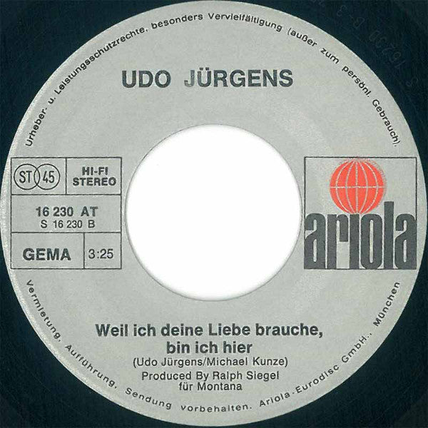 Udo Jürgens - Ein Neuer Morgen (7", Single)