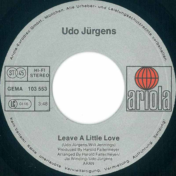 Udo Jürgens - Leave A Little Love / Even An Angel Has Bad Days (7", Single)