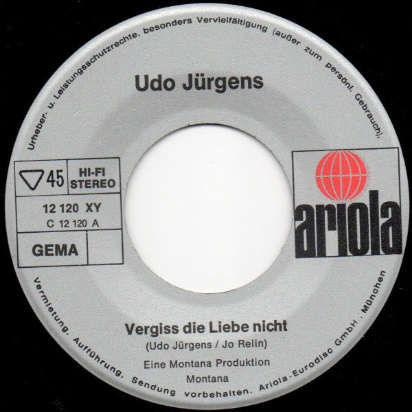 Udo Jürgens - Vergiß Die Liebe Nicht (7", Single)