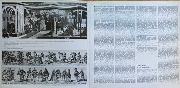 It also has black and white photos of paintings and engravings depicting people dancing and making music in the renaissance.