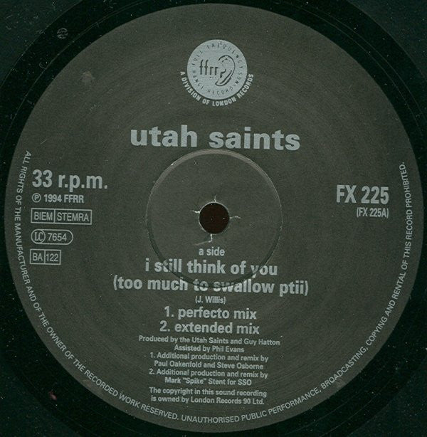 Utah Saints - I Still Think Of You (Too Much To Swallow PtII) (12", Single)