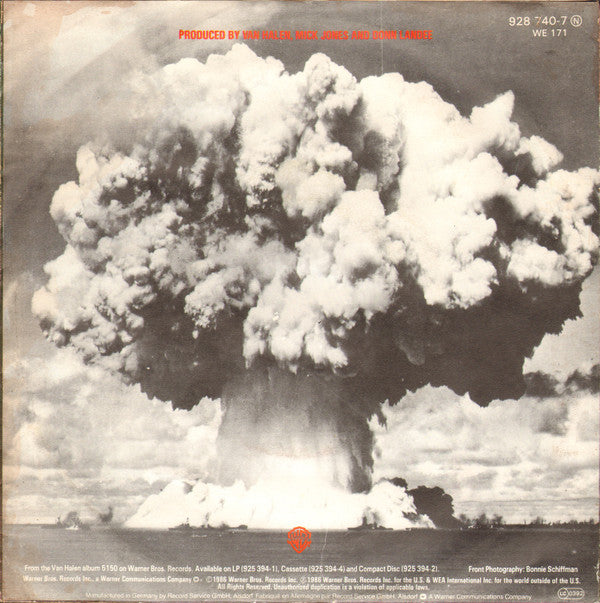 Labels: From the Van Halen album "[r=543467" (925 394-1) on Warner Bros. Records ℗ + © 1986 Warner Bros. Records Inc. for the U.S. & WEA International Inc. for the world outside of the U.S. Yessup Music Company ASCAP Made in Germany by WEA Musik GmbH [Warner logo A Warner Communications Company Sleeve: © 1986 Warner Bros. Records Inc. ℗ 1986 Warner Bros. Records Inc. for the U.S. & WEA International Inc. for the world outside of the U.S. Manufactured in Germany by Record Service GmbH, Alsdorf [Warner logo A Warner Communications Company ___________________ Editions with 'white/grey WB logo' centre labels. Similar edition [r=8080221 has labels with 'horizontal lines' label design.