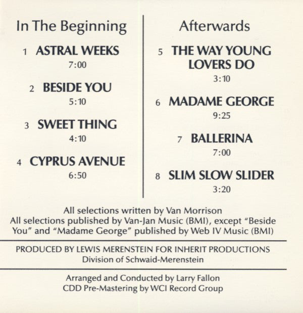 All selections published by Van-Jan Music (BMI), except "Beside You" and "Madame George" published by Web IV Music (BMI)