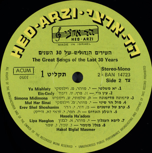 Various - השירים הגדולים של 30 השנים = The Great Songs Of The Last 30 Years (3xLP, Comp, Tri)
