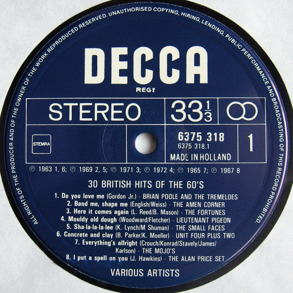 The title on the labels is "30 Hits Of The 60's"