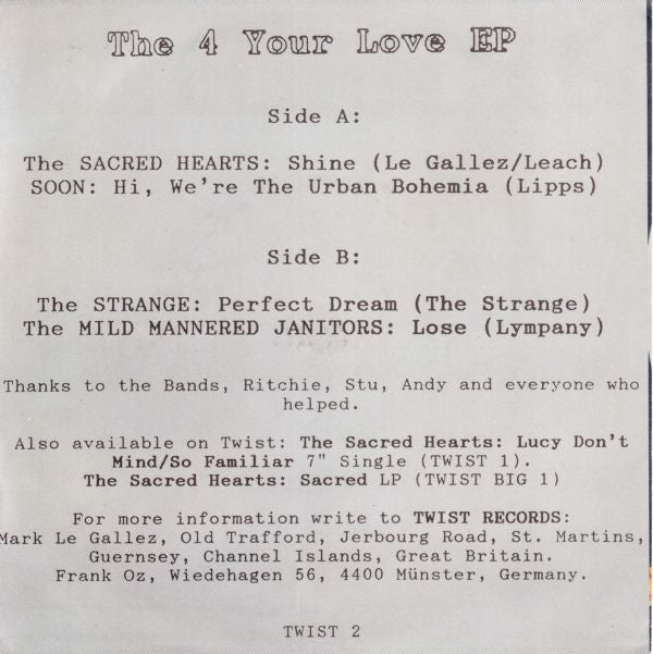 Title on rear sleeve & label side A: The 4 Your Love EP