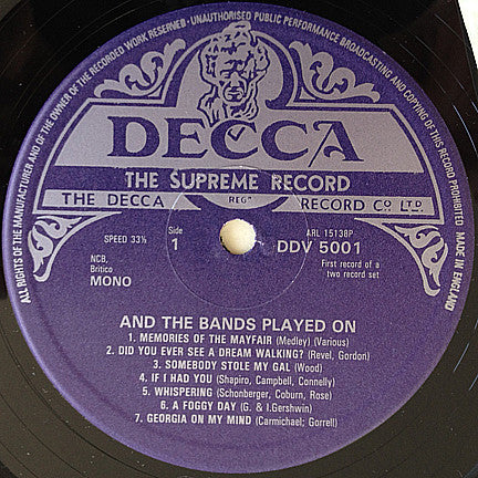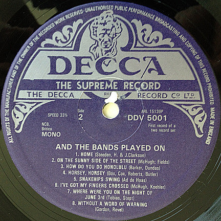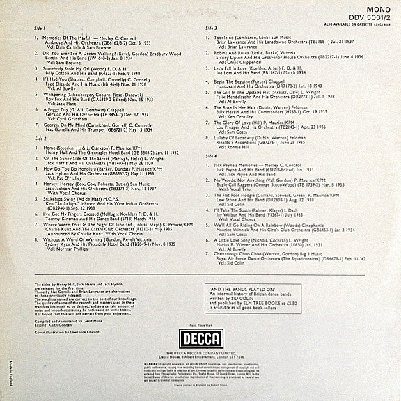 Inner gatefold sleeve notes: Adapted from Sid Colin's book "And The Bands Played On".