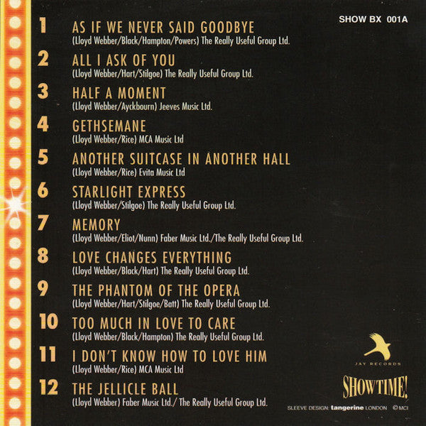 3 CD set in individual jewel cases with 2-panel inserts, housed in an outer card box. The catalogue number SHOW BX 001 is for the set and the numbers SHOW BX 001A, SHOW BX 001B and SHOW BX 001C are for the individual CDs.