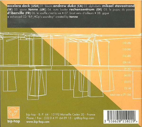Track 2, Alphabetic by Andrew Duke, recorded at Cognition Sound in Halifax on a summer afternoon in 1993; sole equipment: Roland Juno 106 and E-mu Emax II (turbo version) recorded live in one take direct to DAT, released "as-is" with no edits; Andrew Duke's Schotoma EP (Cognition Audioworks, caw008, 1994) was recorded that same summer.