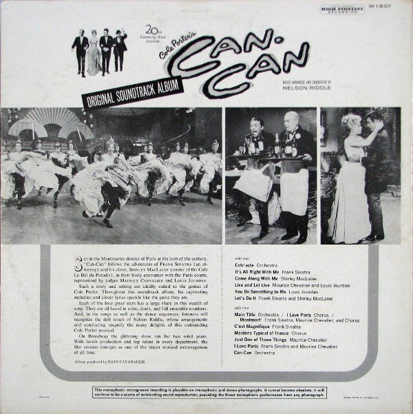 B1. "Can-Can" Original Soundtrack Orchestra, "Can-Can" Original Soundtrack Chorus, Frank Sinatra, Maurice Chevalier, "Can-Can" Original Soundtrack Chorus - Main Title / I Love Paris / Montmart' 3:00