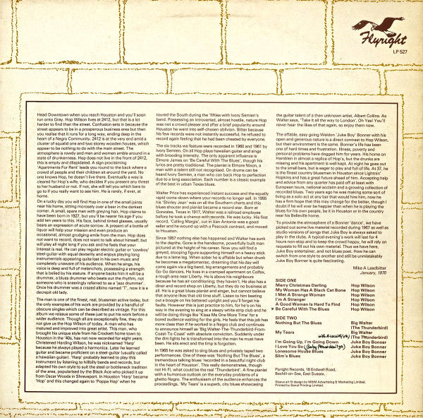 A1. Hop Wilson - Merry Christmas Darling A2. Hop Wilson - My Woman Has A Black Cat Bone A3. Hop Wilson - I Met A Strange Woman A4. Hop Wilson - I'm A Stranger A5. Hop Wilson - A Good Woman Is Hard To Find A6. Hop Wilson - Be Careful With The Blues B1. Big Walter Price - Nothing But The Blues B2. Big Walter Price - My Tears B3. Juke Boy Bonner - I'm Going Up, I'm Going Down B4. Juke Boy Bonner - I Love You So B5. Juke Boy Bonner - Lonesome House Blues B6. Juke Boy Bonner - Slim's Blues
