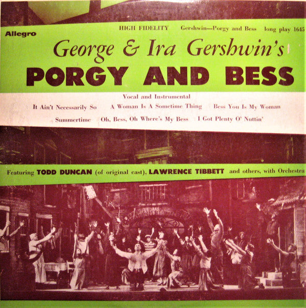 Featuring Todd Duncan (of original cast), Lawrence Tibbett and others, with orchestra.