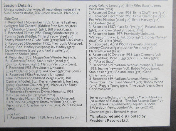 A1. Charlie Feathers - Defrost Your Heart A2. Doug Poindexter - My Kind Of Carryin' On A3. Rad Hadley - I'd Be A Millionaire A4. Maggie Sue Wimberly - How Long A5. Luke McDaniel - Uh Babe A6. Miller Sisters - Chains Of Love A7. Billy Lee Riley - Trouble Bound A8. Carl Perkins - Sweetheart's Stranger B1. Jerry Lee Lewis - It All Depends B2. Ernie Chaffin - Feelin' Low B3. Mack Self - Easy To Love B4. Warren Smith (3) - Blue Days And Sleepless Nights B5. Johnny Cash - Come In Stranger B6. Jack Clement - The Black Haired Man B7. Jeanne Newman - Thanks A Lot B8. Dane Stinit - Sweet Country Girl