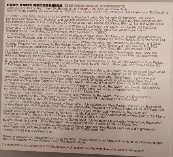 1. The Fort Knox Five - Radio Free D.C. 2. The Fort Knox Five - Blowing Up The Spot 3. The Fort Knox Five - Brazilian Hipster 4. Rex Riddem - Salvador Diaspora (FK5 Remix) 5. Speedy Consuela - Sundaydream 6. The Fort Knox Five - Once Again 7. The Fort Knox Five - The Big Score 8. Speedy Consuela - Sukka Suited 9. The Fort Knox Five - Dodge City Rockers 10. International Velvet - Baby Shiva 11. Liftoff - Shine 12. International Velvet - Chariot (Interplanetary Mix) 13. Liftoff - Autumn 14. Liftoff - Kool It Man