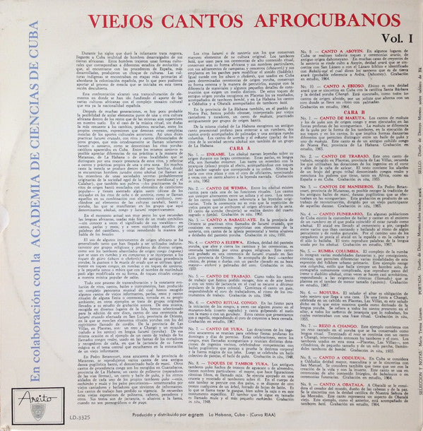 Various - Viejos Cantos Afrocubanos Vol. I (LP, Comp)