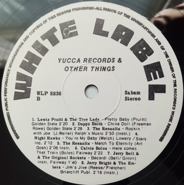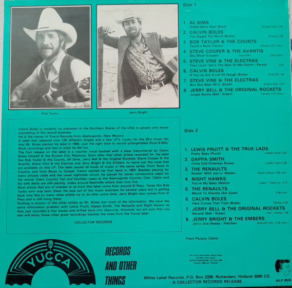 A1. Al Sims - Green Gator Ater 2:33 A2. Calvin Boles - You Giggle Too Much 1:55 A3. Bob Taylor And The Counts - Taylor's Rock 2:21 A4. Steve Cooper And The Avantis - Sky Diver 2:02 A5. Steve Vine & The Electras - Your Lovin' Get's The Best Of Me 2:53 A6. Calvin Boles - If You've Got A Lot Of Dough 1:48 A7. Steve Vine & The Electras - Boo Boo Bear 2:07 A8. Jerry Bell And The Original Rockets - Jungle Bunny 2:37 B1. Lewis Pruitt And The True Lads - Pretty Baby 2:20 B2. Dappa Smith - China Doll 2:28 B3. The Renaults - Rockin' With Joe 2:50 B4. The Night Hawks (2) - You're My Baby 2:12 B5. The Renaults - March To Eternity 2:08 B6. Calvin Boles - Here Comes That Train 2:22 B7. Jerry Bell And The Original Rockets - Bacardi 1:40 B8. Jerry Bright, The Embers (2) - Jim's Jive 2:18