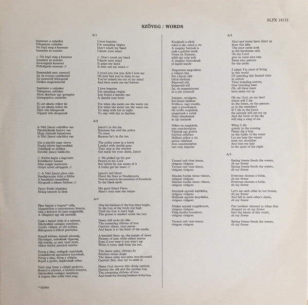 Released with a bilangual (Hungarian and English) lyric sheet.