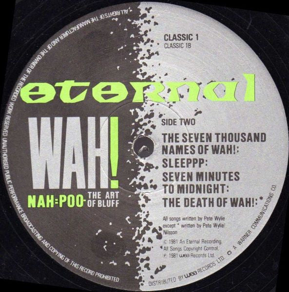 © 1981 An Eternal Recording. ℗ 1981 WEA Records Ltd. Distributed by WEA Records Ltd. - A Warner Communications Co. Printed and made in England. Laminated front cover. Issued with an A4-sized insert, printed on both sides. Etched runouts, exc. stamped "STRAWBERRY" on A. Track durations are not printed on the release.