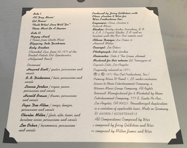 Studios: Wally Heider Recording, S.F. & L.A. / Crystal Studio, L.A. and on location with the Far Out remote unit