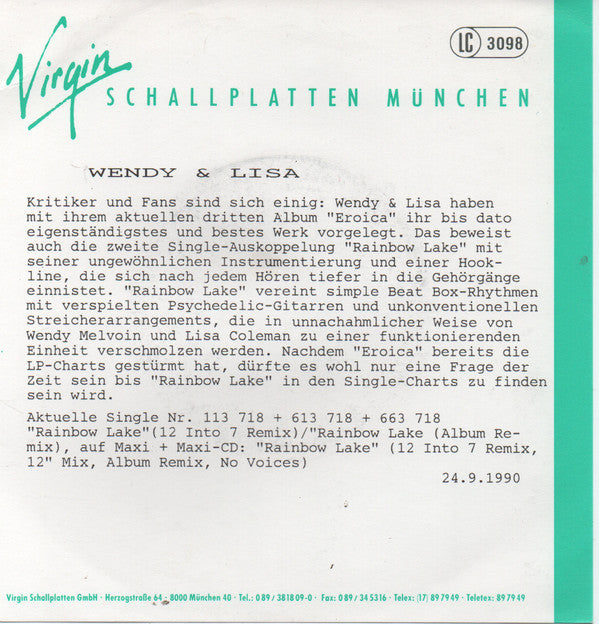 ℗ & © 1990 Virgin Records Ltd. Sides are reversed on the record.