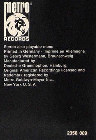 Licensed from MGM Records (Metro-Goldwyn-Mayer Inc.). Manufactured by Deutsche Grammophon, Hamburg