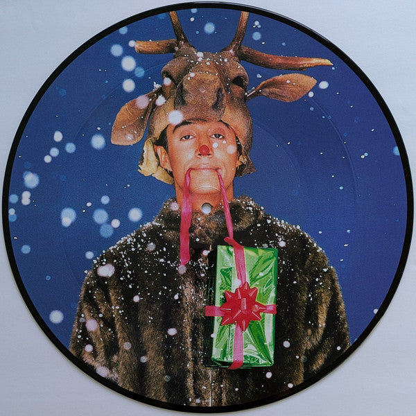 Lyrics are printed along the border of the die-cut sleeve. There is a misprint as "Merry Christmas, I wrapped it up and sent it" should read "Happy Christmas, I wrapped it up and sent it."