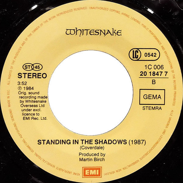A-side produced for Mike Stone Enterprises & Pogologo Productions on behalf of Whitesnake Overseas Productions Ltd. ℗ 1987 ℗ 1984 original sound recordings made by Whitesnake Overseas Ltd. under license to EMI Records Ltd. Made in EEC