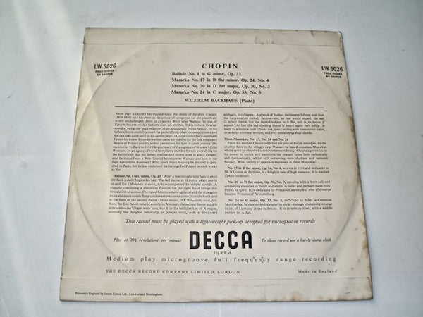 Wilhelm Backhaus - Chopin (10")
