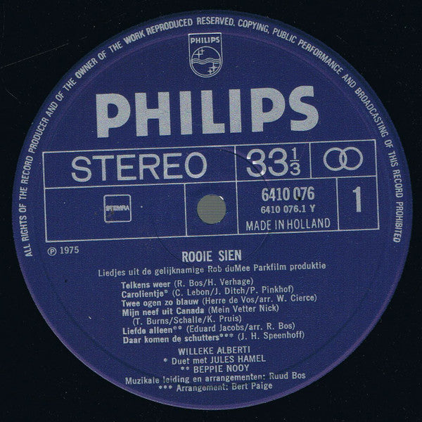 Songs from the movie 'Rooie Sien', a Rob du Mee/Parkfilm production, directed by Frans Weisz