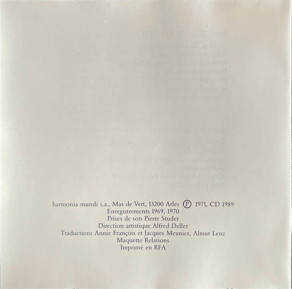 Packaging: standard jewel case with 16 page booklet, including French, English and German liner notes