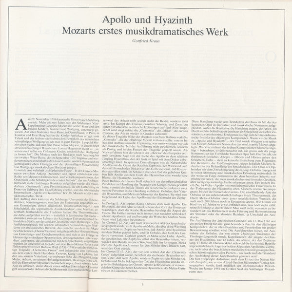Wolfgang Amadeus Mozart, Edith Mathis, Cornelia Wulkopf, Arleen Auger, Hanna Schwarz, Anthony Rolfe Johnson, Salzburger Kammerchor, Das Mozarteum Orchester Salzburg, Leopold Hager - Apollo Et Hyacinthus (2xLP)