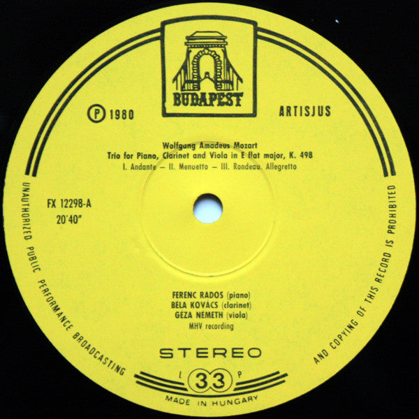 . Trio For Piano, Clarinet And Viola In E Flat Major, K. 498