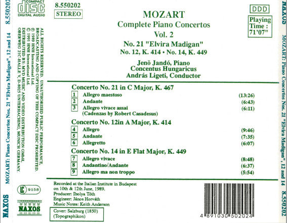 Wolfgang Amadeus Mozart / Jenö Jandó, Concentus Hungaricus, András Ligeti - Complete Piano Concertos Vol. 2