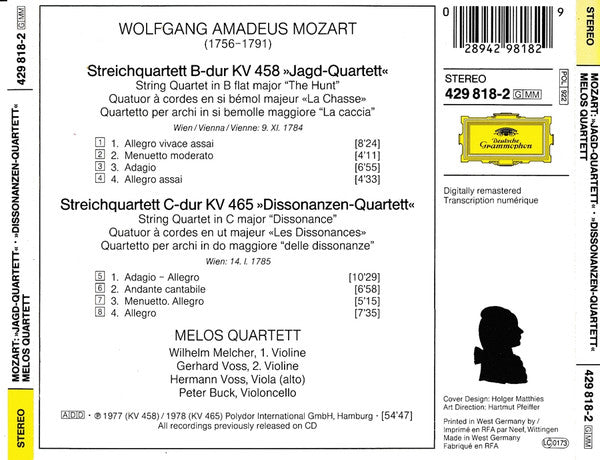 - "℗ 1977 (KV 458) / 1978 (KV 465) Polydor International GmbH, Hamburg"