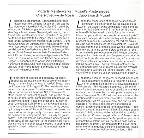 - Page 2: Description of the "Mozarts Meisterwerke" series in German, English, French & Italian