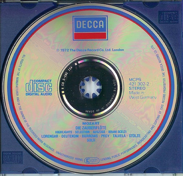 Wolfgang Amadeus Mozart, Pilar Lorengar . Cristina Deutekom, Stuart Burrows, Hermann Prey, Martti Talvela, Gerhard Stolze, Georg Solti - Die Zauberflöte