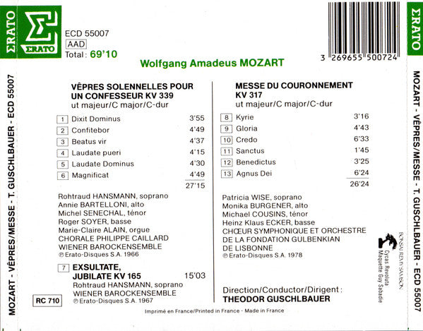 Wolfgang Amadeus Mozart, Theodor Guschlbauer - Vêpres Solennelles Pour Un Confesseur / Exsultate, Jubilate / Messe Du Couronnement (CD, Comp)
