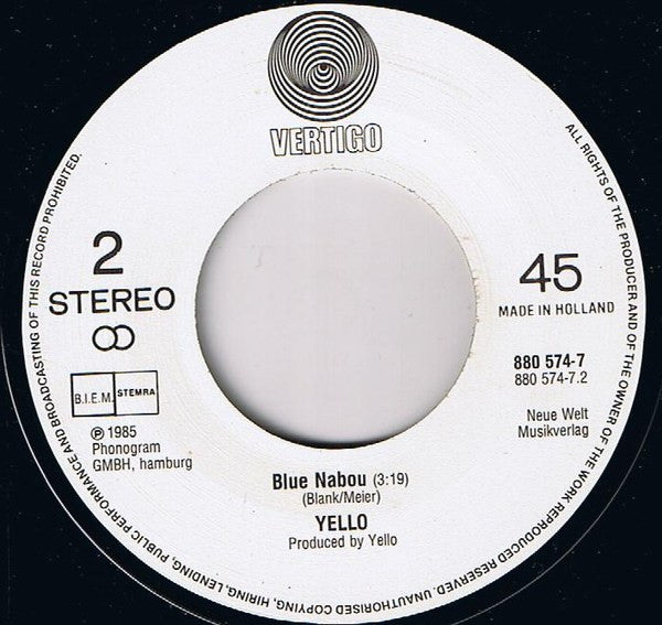 Label: Made in Holland Neue Welt Musikverlag Ⓟ 1985 Phonogram GMBH, Hamburg [Side A Ⓟ 1985 Phonogram GMBH, hamburg [Side B Sleeve: Ⓒ 1985 by Warner Bros. Music. Printed in the Netherlands Marketed by Phonogram Similar to release [r=1318946 but this has white label artwork
