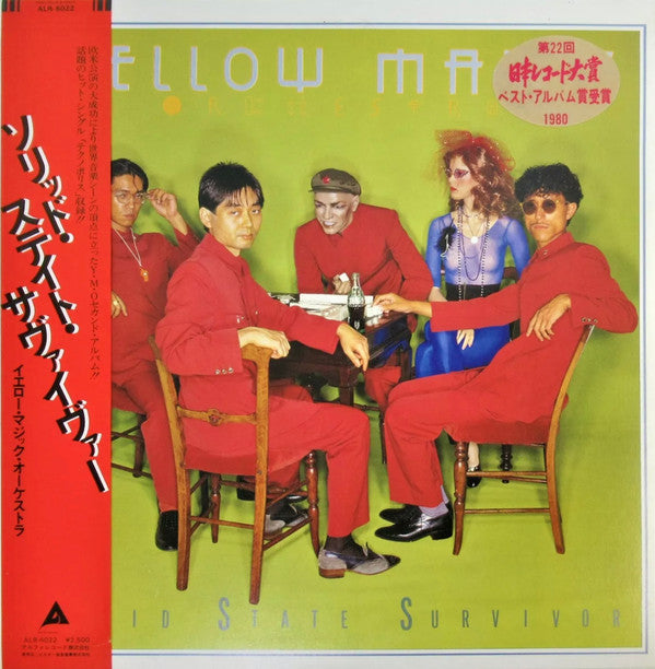 Yellow Magic Orchestra's second studio album. Released with obi strip and printed inner sleeve. This is the 5th vinyl version, with the later variant of the obi strip used at the time. 1st Version: Yellow (transparent) vinyl with red labels used on all Alfa records (except special variants) from 1978 to early 1980, features a red obi strip which mentions the yellow vinyl. [All subsequent versions are in standard black vinyl. 2nd Version: Red obi strip from the first version but without the mention of the yellow vinyl, red labels on vinyl. Used until around November 1979. 3rd Version: Yellow obi strip, red labels on vinyl. Made sometime between November 1979 - February 1980. 4th Version: Different red obi strip, red labels on vinyl. Made for the release of the group's live album Public Pressure, which is promoted on the back of the obi strip. 5th Version: Red obi strip #2, now with gradient labels used on all Alfa records (except special variants) from early 1980 to early 1981. There was a later variant of the obi strip that added the catalog numbers for the cassette versions of the promoted albums in addition to Solid State Survivor's, with an image of its cassette cover design. In addition, some copies of this pressing have a hype sticker stating that the album won an industry award. 6th Version: Red obi strip #2 with final mention of Victor Musical Industries as the distributor, now with white/beige labels used on all Alfa records (except special variants) since early 1981. 7th Version: Red obi #2 with mention of Warner-Pioneer Corporation as the new distributor after the rights transferred in 1983. The white/beige labels are carried over from the previous version, but the vinyl is re-cut at a slightly different rate. Versions 1-6 were manufactured by Victor, and the black vinyl versions used a unique formula in which the record becomes semi-transparent when you hold it up to a source of light. Warner pressings are fully opaque. Recorded at "A" Studio, Shibaura, Tokio All tunes ©1979 by ALFA MUSIC LTD. except DAY TRIPPER ©1965 for the world by NORTHERN SONGS, LTD., London, England, Rights for Japan controlled by Shinko Music Publishing Co., Ltd, Tokyo. ℗1979 Alfa Records Made In Japan Produced by Alfa Records, Inc. Manufactured and distributed by Victor Musical Industries, Inc.