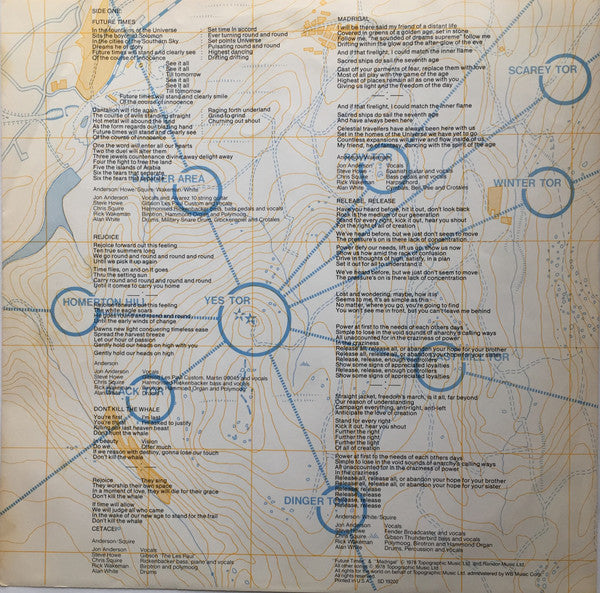 [l408779 pressing identified by "PRC" or "PRC (PR)" etched in runout. Do not confuse this submission with the [l130920 pressing, which has "(PR)P" or only "(PR)" in the runouts, found here: [r11381062. Issued with a printed inner sleeve with lyrics, credits and recording info. Some copies designated as promo with gold foil stamp and timing strip sticker. "Future Times", "Madrigal" & "Arriving UFO" © 1978 Topographic Music Ltd. and Rondor Music Ltd. All other songs © 1978 Topographic Music Ltd. Runouts are etched. [Rear jacket: Atlantic Recording Corporation 75 Rockefeller Plaza, New York, New York 10019 [Warner 'W' logo® A Warner Communications Company ℗ 1978 Atlantic Recording Corporation and Star/Rights Co. Printed in U.S.A. [Inner sleeve: All rights for the world on behalf of Topographic Music Ltd. administered by WB Music Corp. Sleeve & jacket design © 1978 Atlantic Recording Corporation and Star/Rights Co. Disc cutting Sean Davis at Strawberry Studios, London Recorded at Advision Studios, London Mixing and additional recording at Rak Studios, London Rick Wakeman appears by courtesy of A & M Records. [Labels: ℗ 1978 Atlantic All songs published by Topographic Music Inc., ASCAP administered by WB Music Corp. Mfg. by Atlantic Recording Corp., 75 Rockefeller Plaza, N.Y., N.Y. [Warner 'W' logo A Warner Communications Company