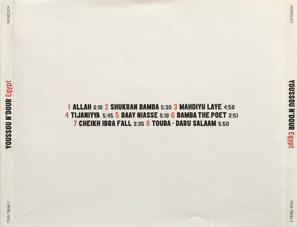 The script above YOUSSOU N'DOUR on the O-card cover is indented and gold coloured.