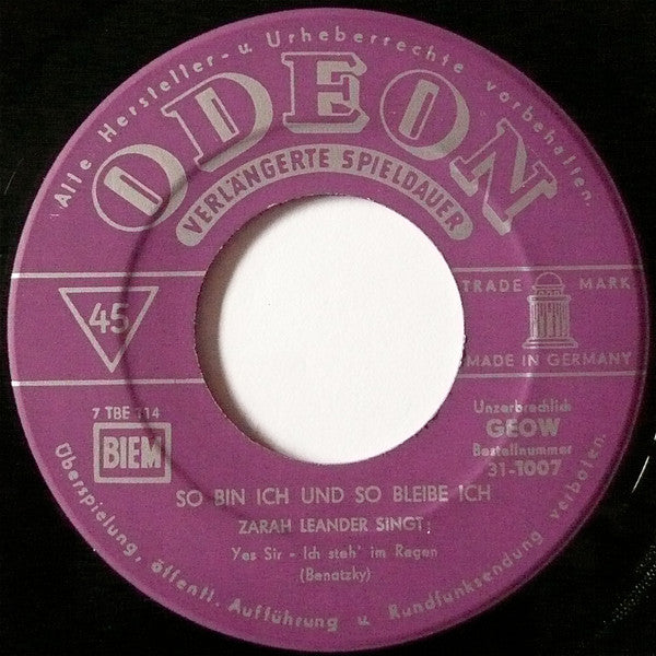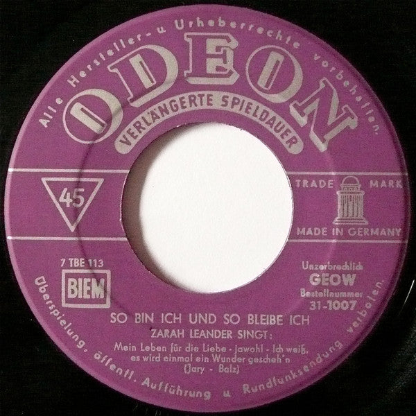 Zarah Leander - So Bin Ich Und So Bleibe Ich (7", EP, Mono)