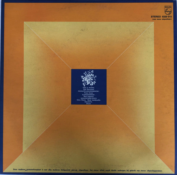 Issued with a gatefold sleeve and a printed insert with lyrics. - Rear sleeve - Realisatie: Druco - Labels - ℗ 1973 Made in Holland - Insert - Copyright 1973 met toestemming van Zjef Vanuytsel - Brussel